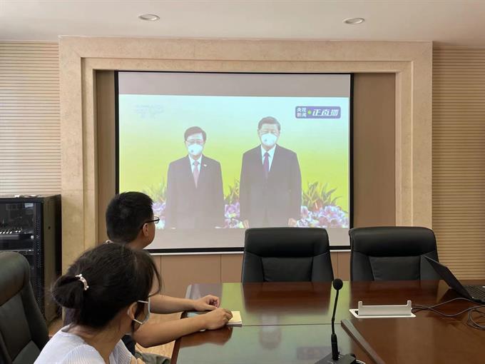 当天上午,在少儿图书馆三楼会议室,全体党员共同收看大会直播,认真聆听习近平总书记重要讲话。大家看到香港回归祖国25年来的蓬勃发展,内心热血沸腾,为祖国骄傲,为香港加油。
